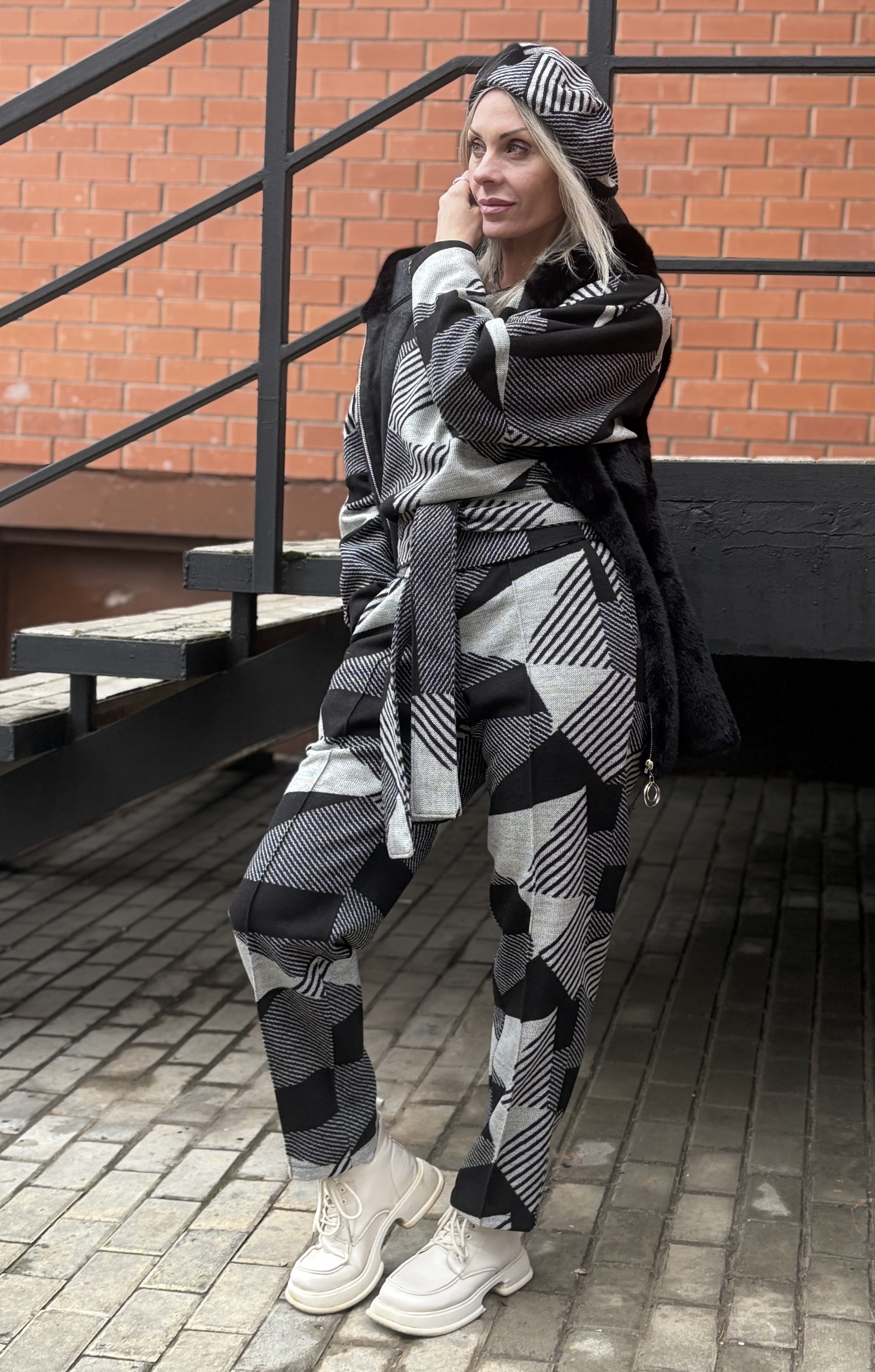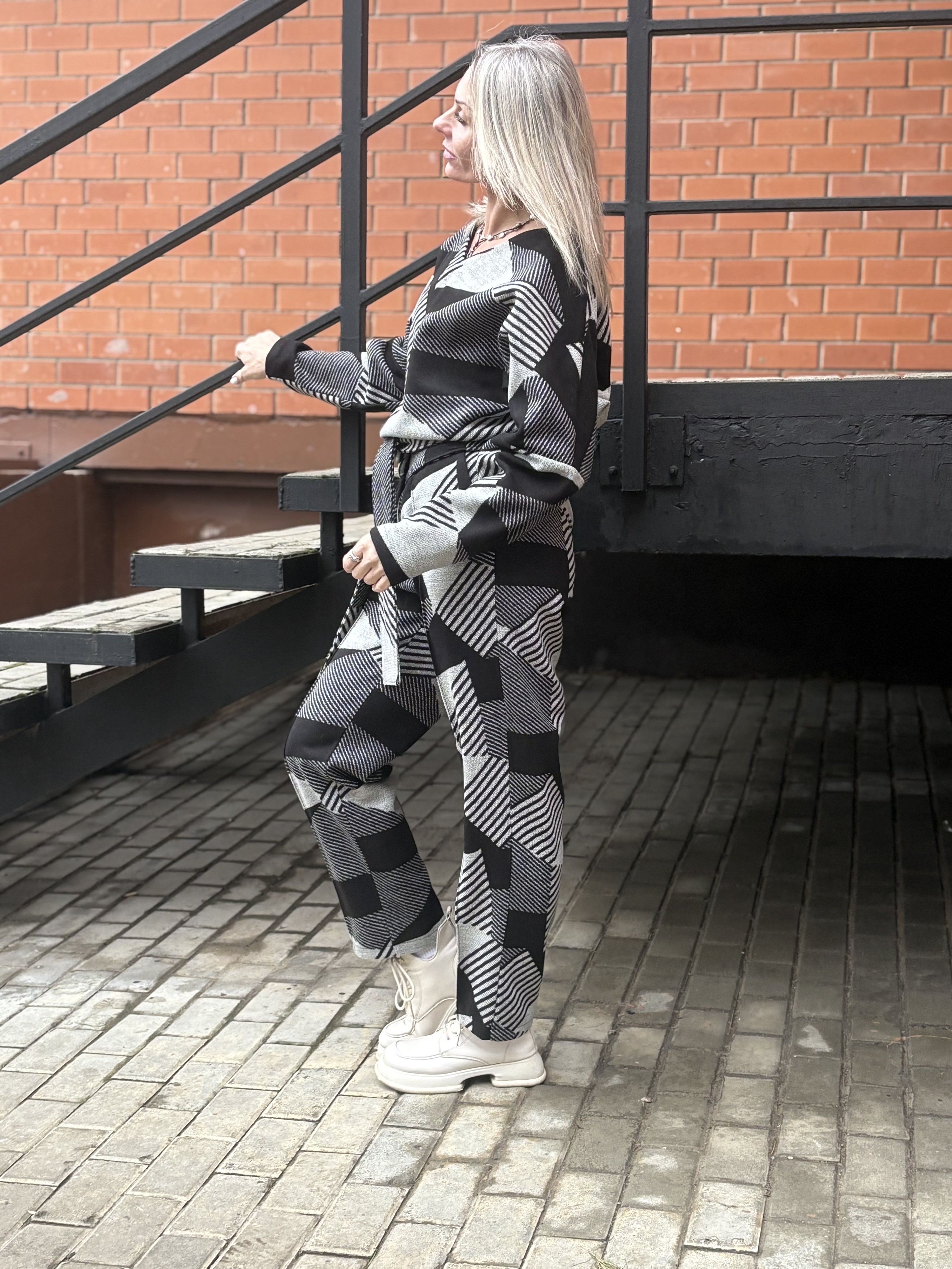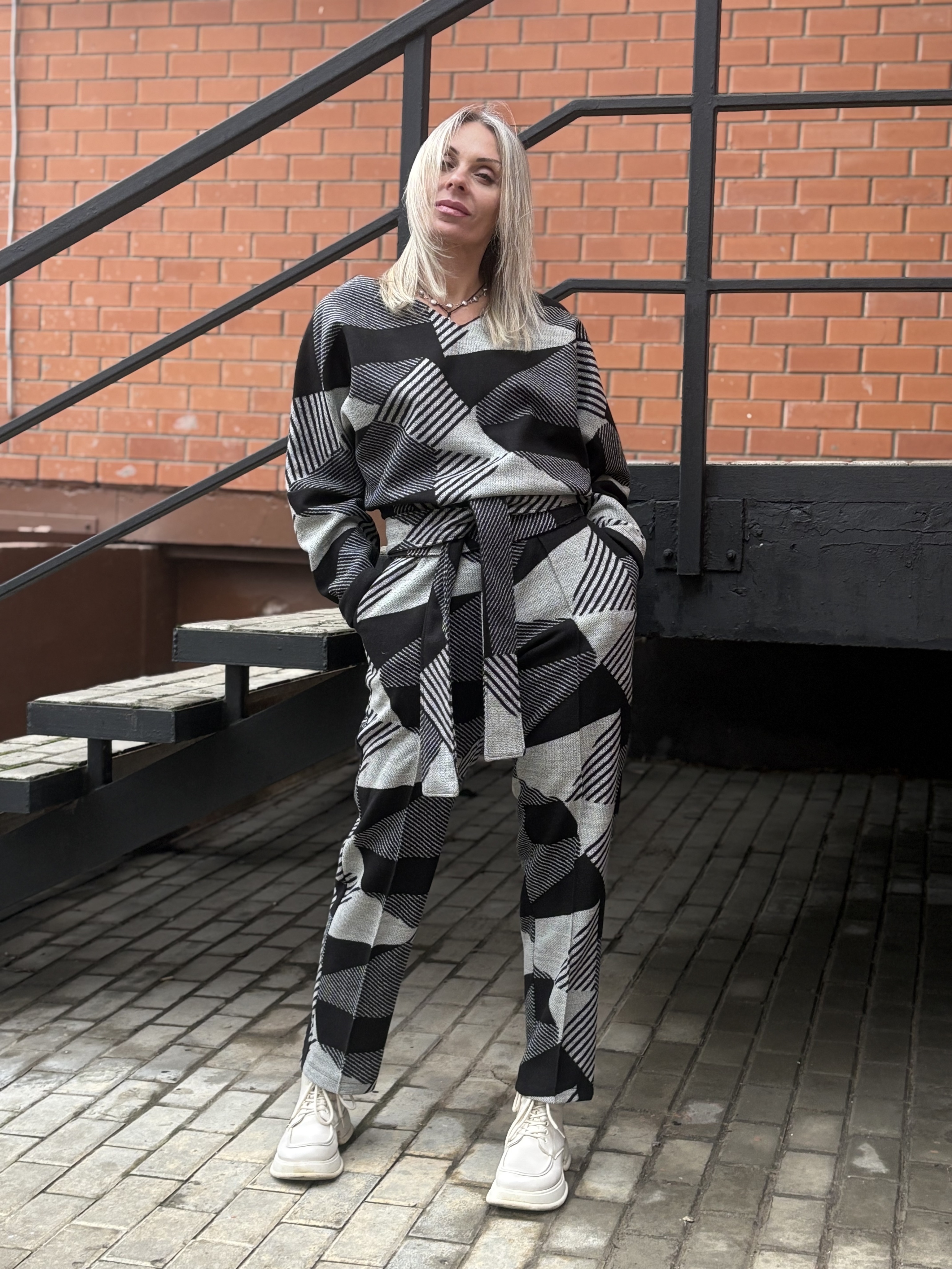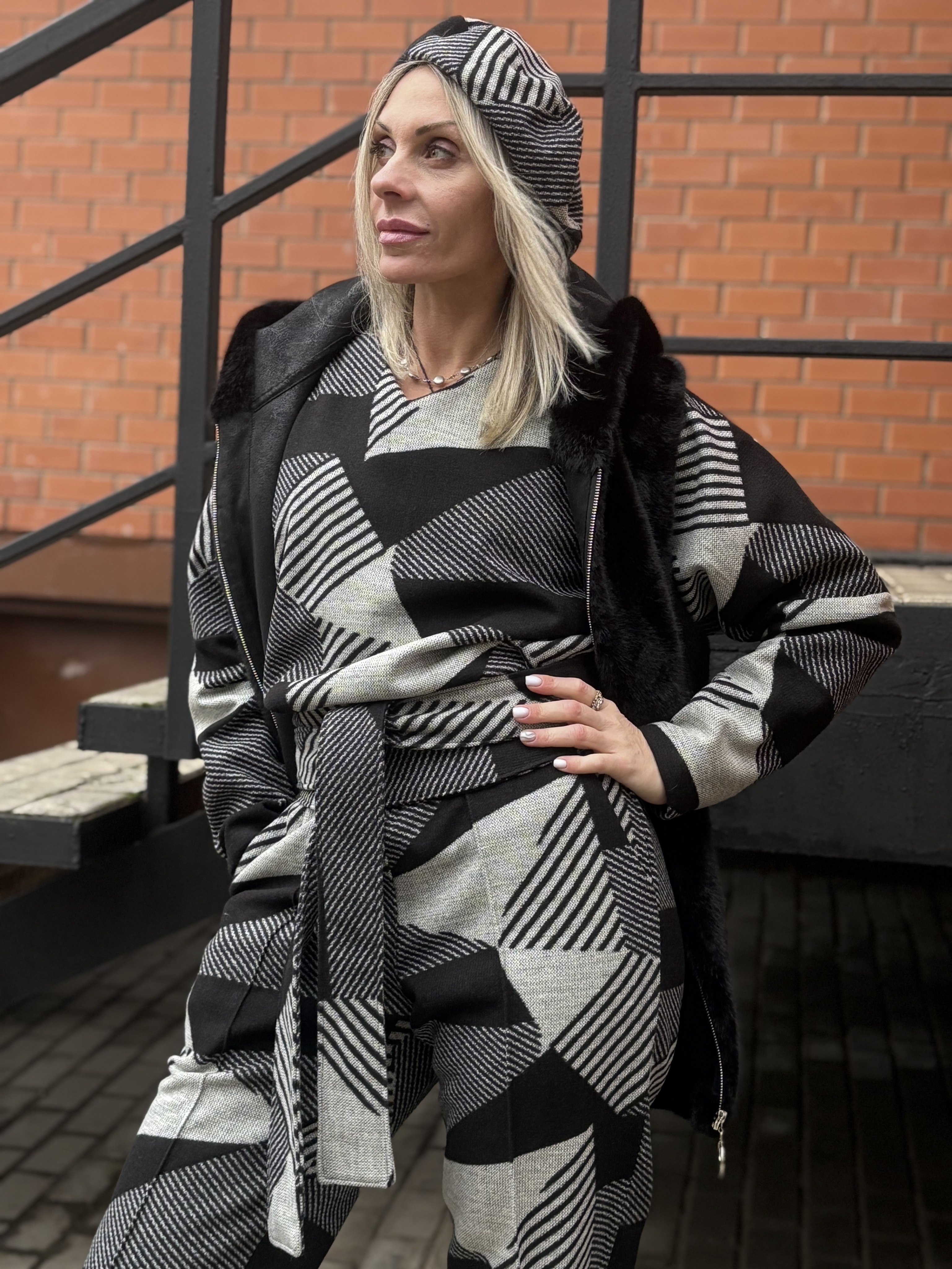 Брюки со стрелкой + Лонг + кушак / чб