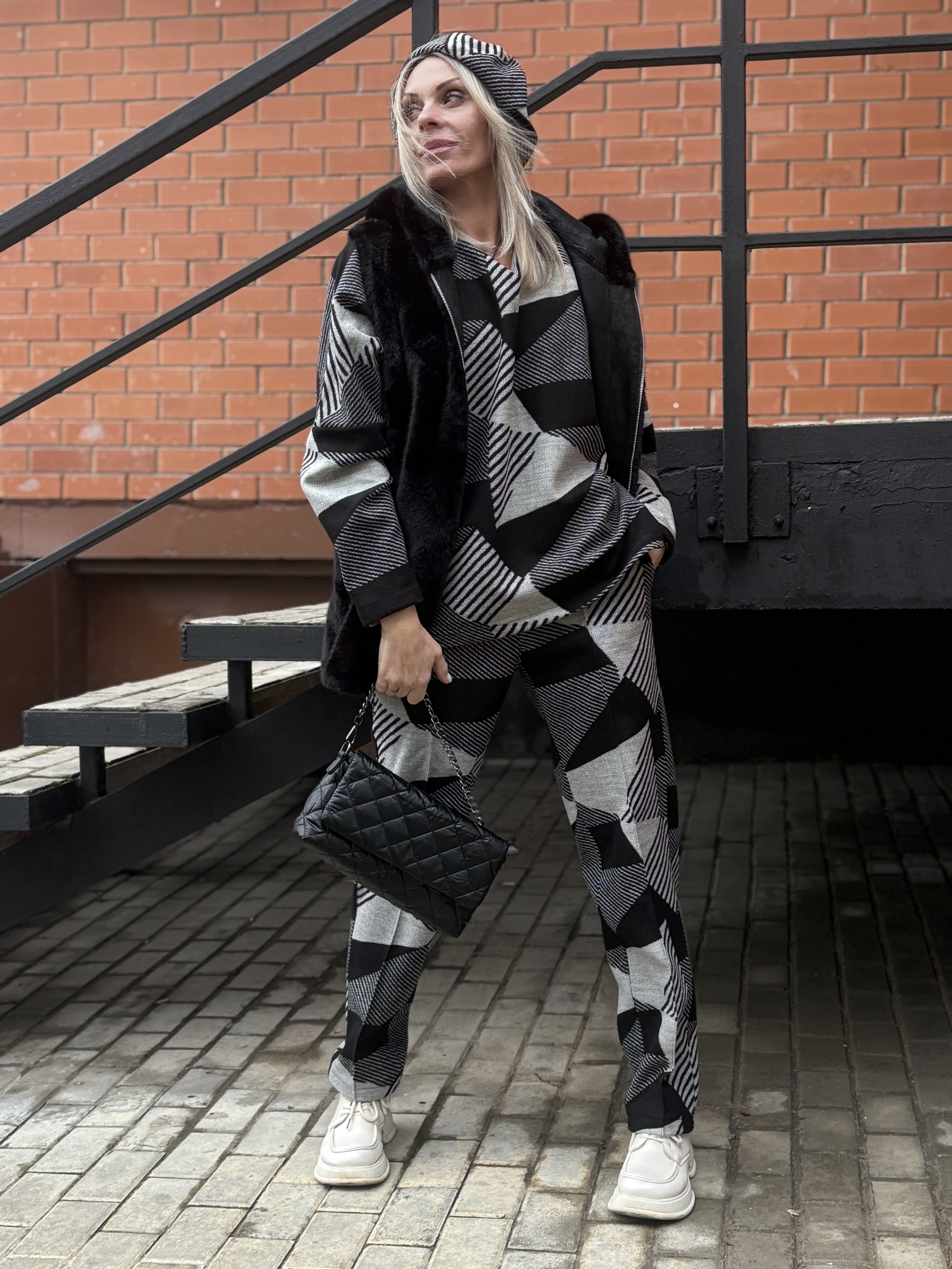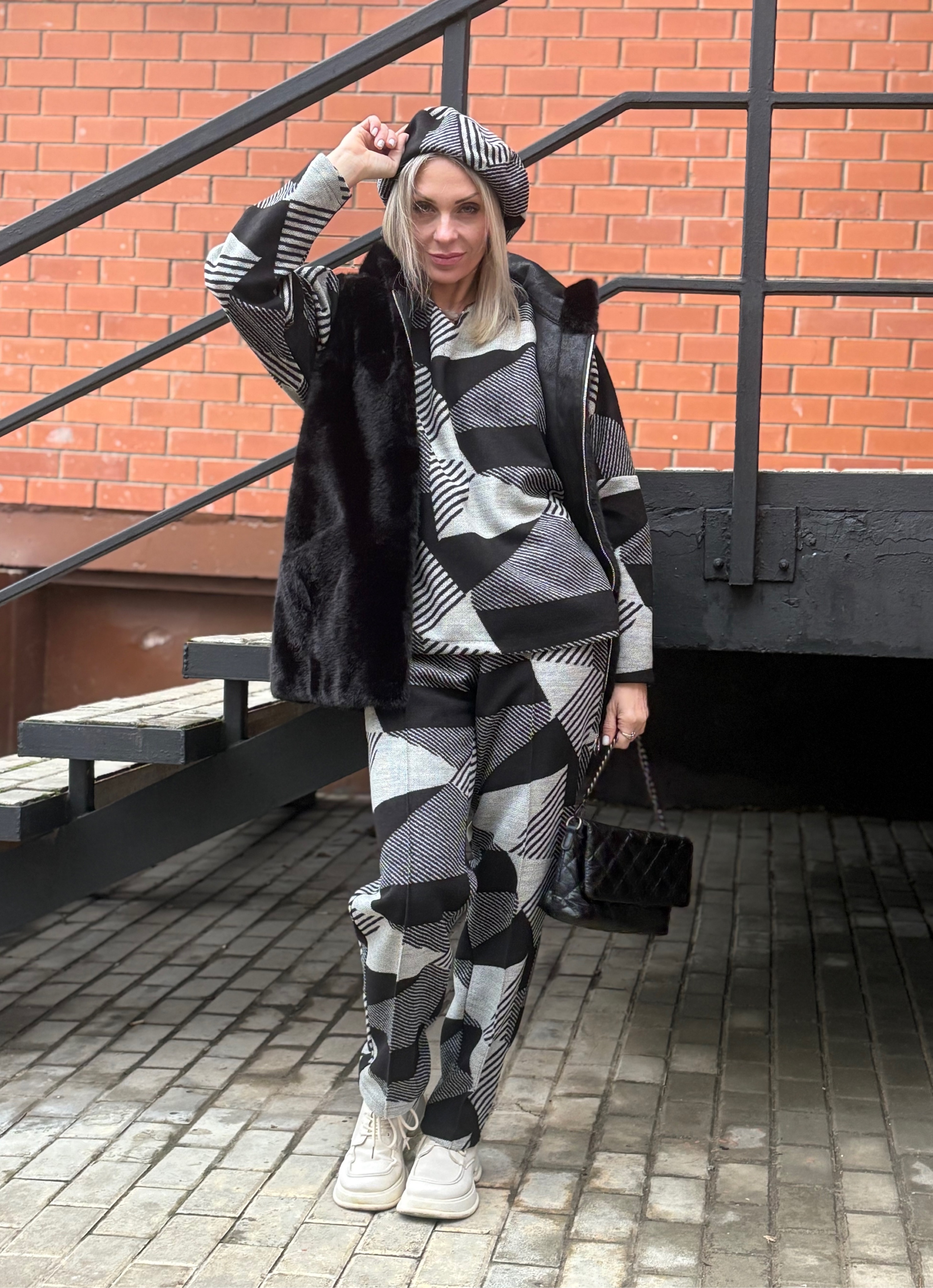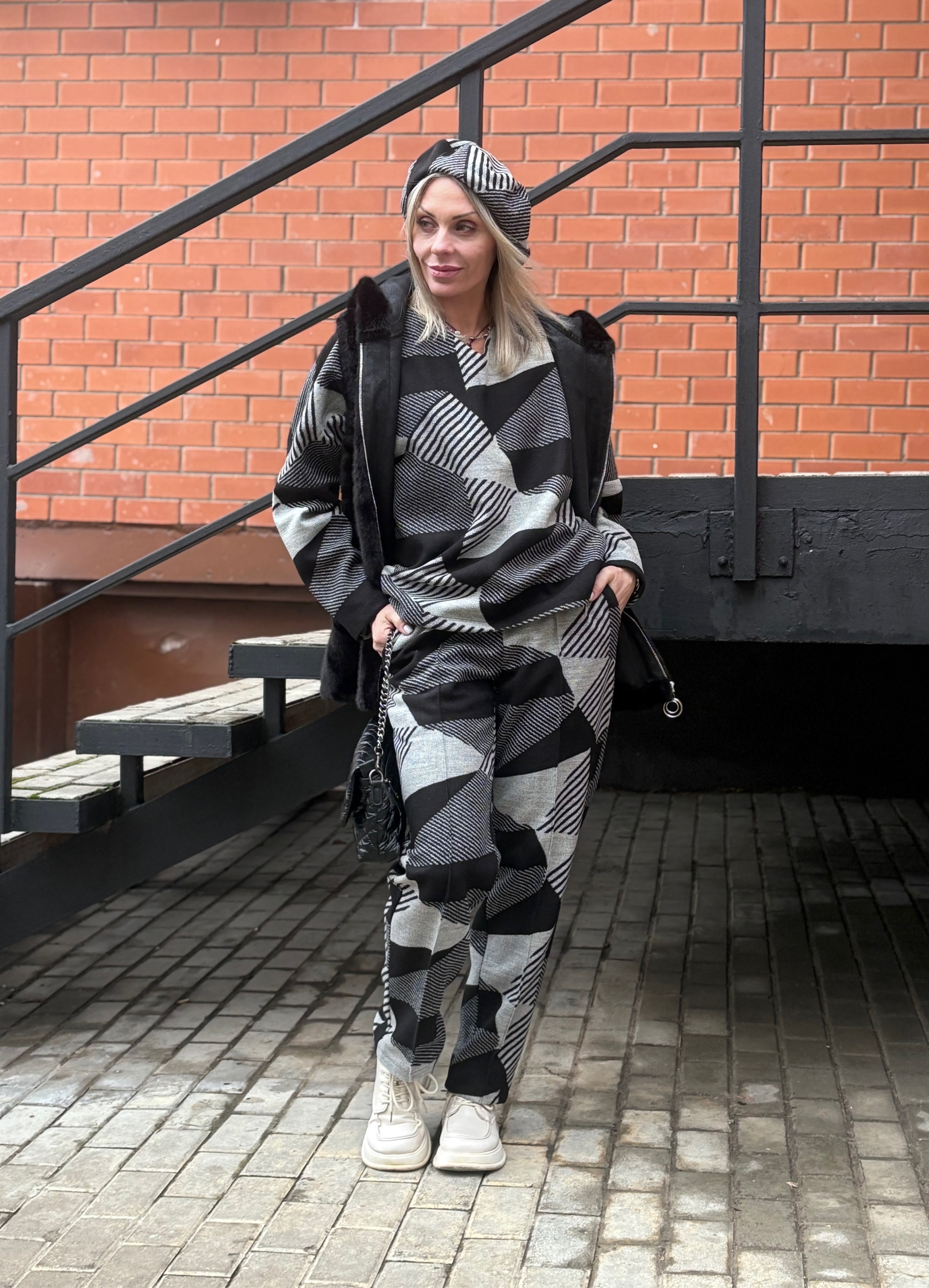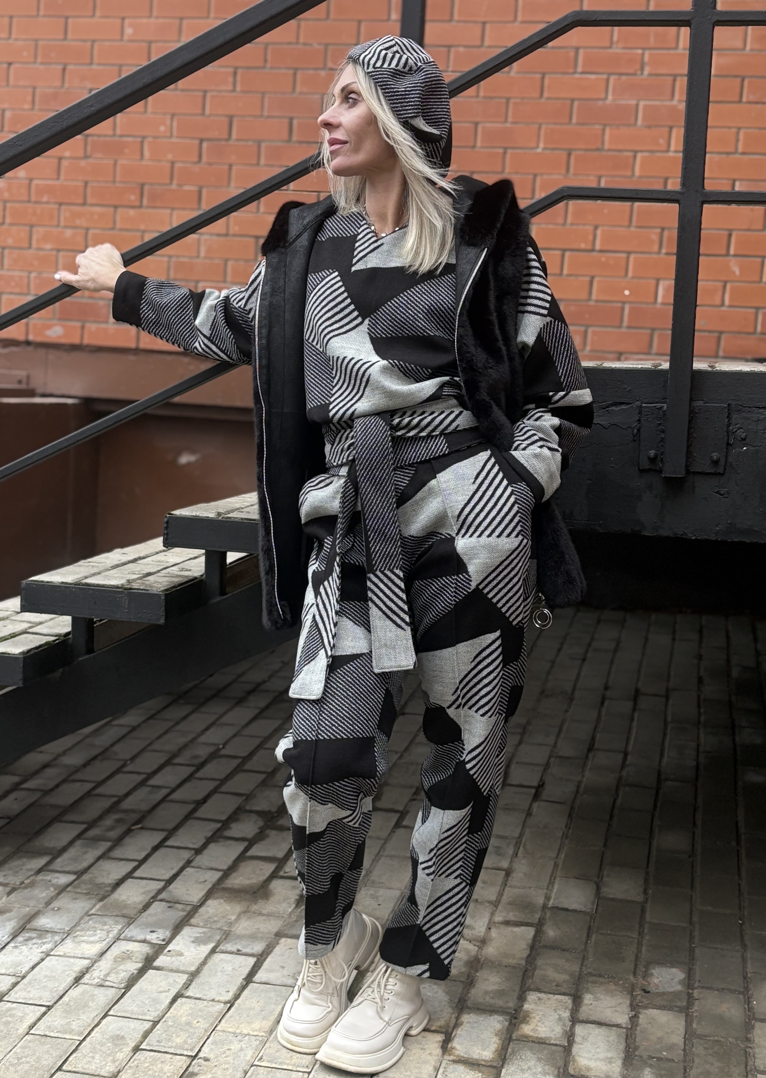 Брюки со стрелкой + Лонг + кушак / чб