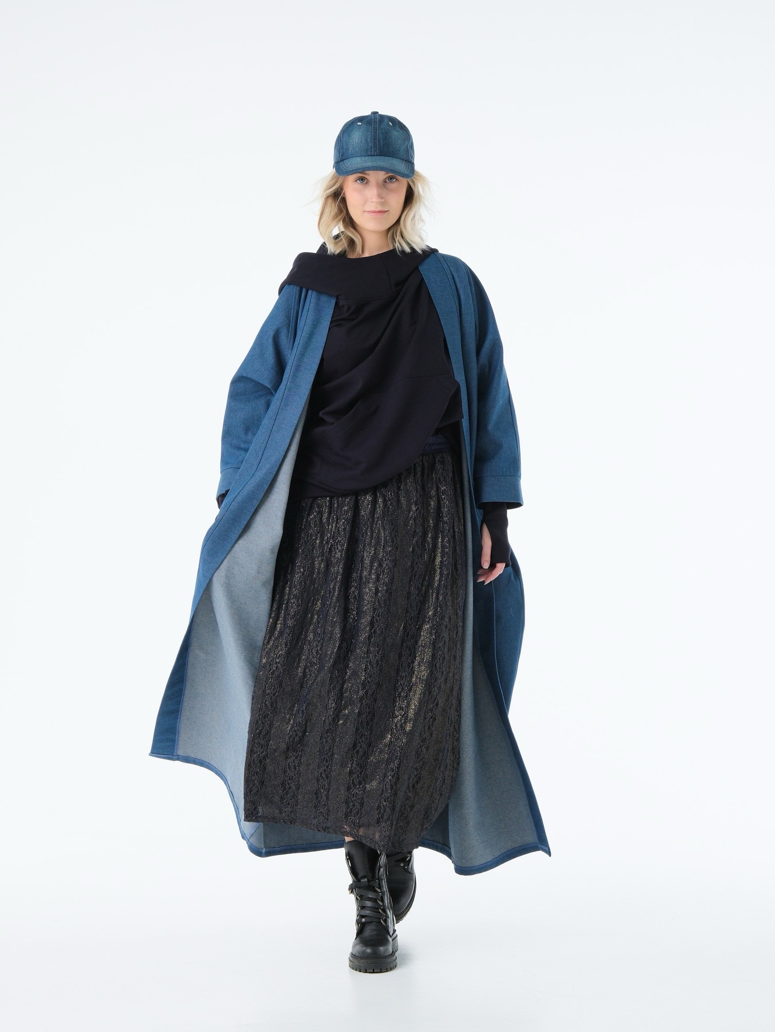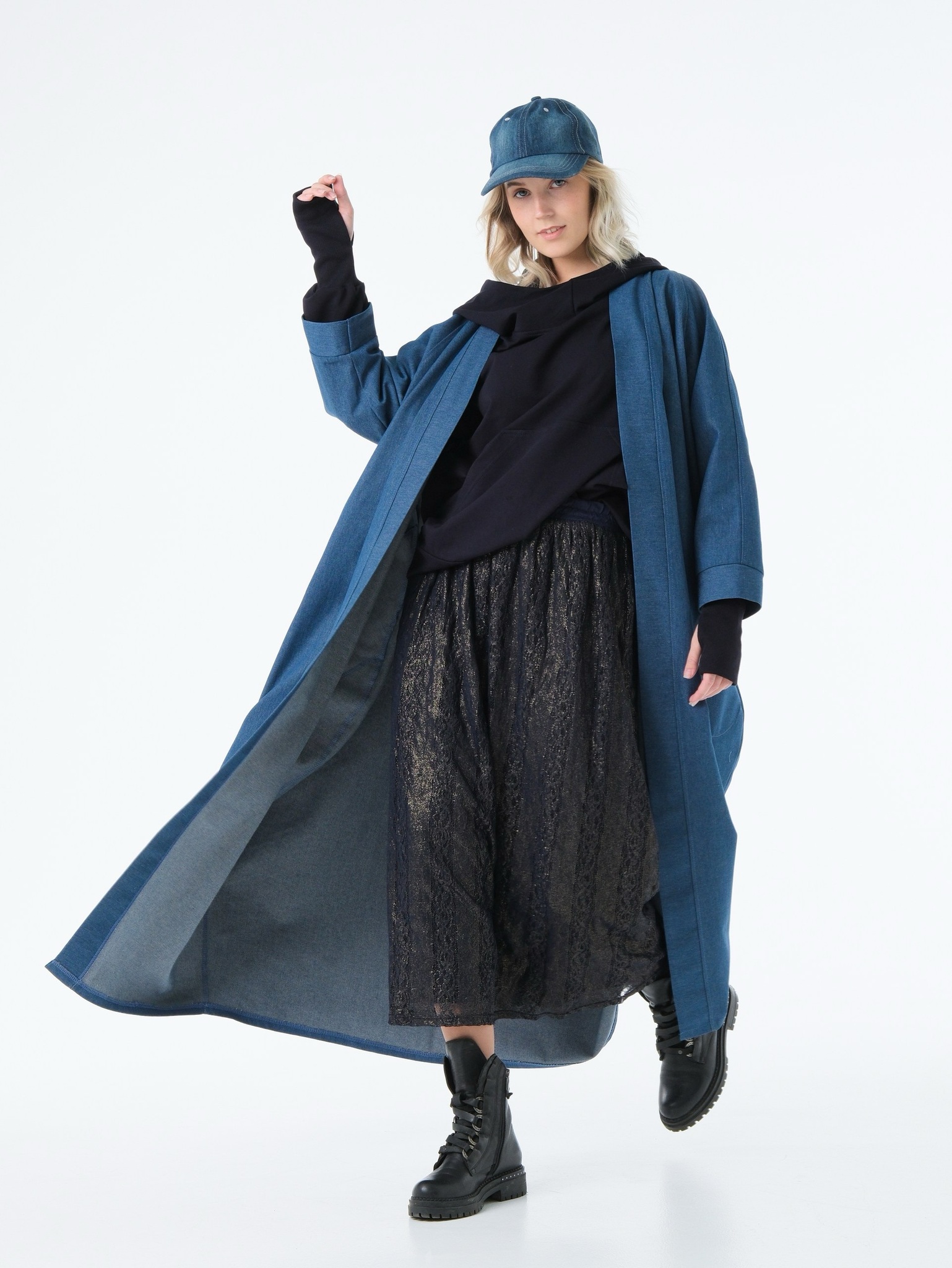Кафтан /джинс / синий+ кушак