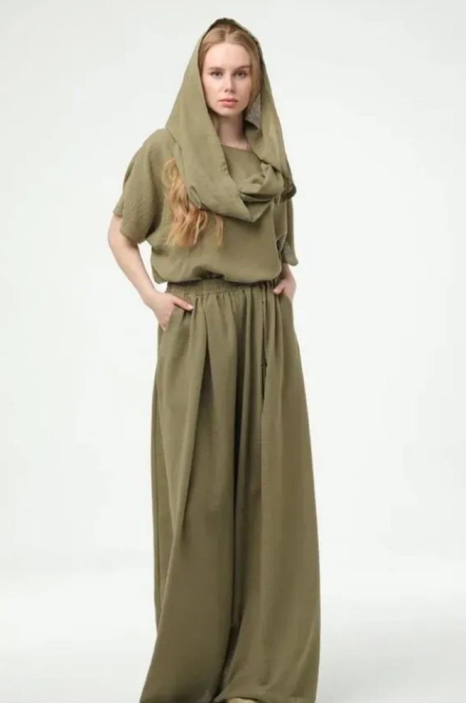 Костюм /хаки жатка/блуза+ палаццо