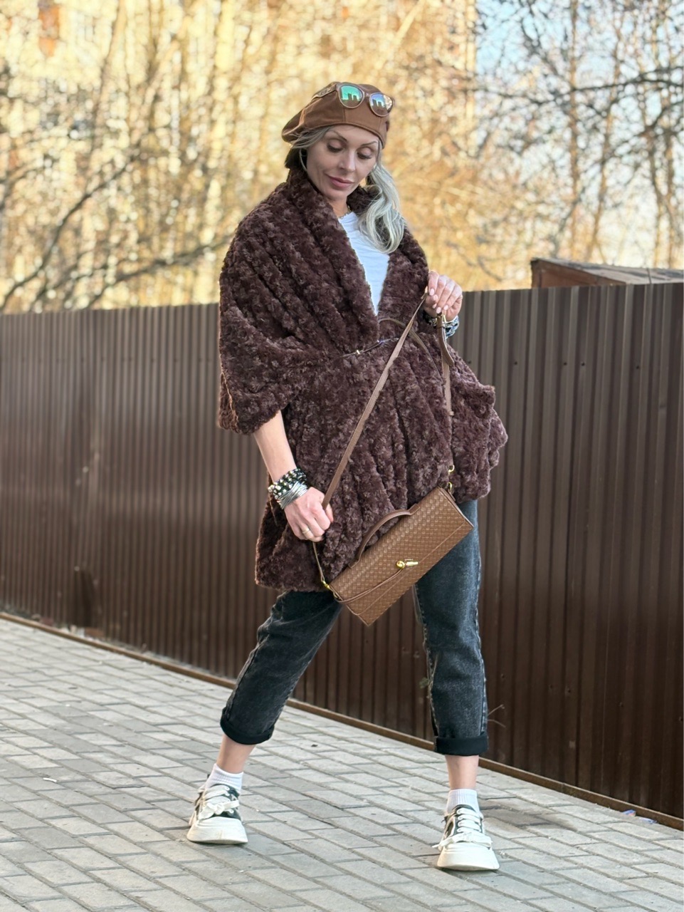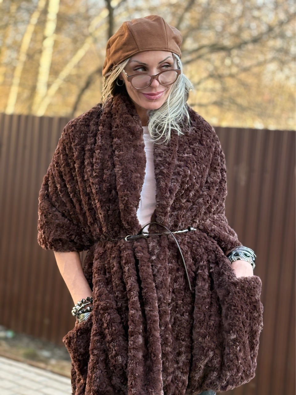 Накидка /жилет с карманами и поясом шоколад