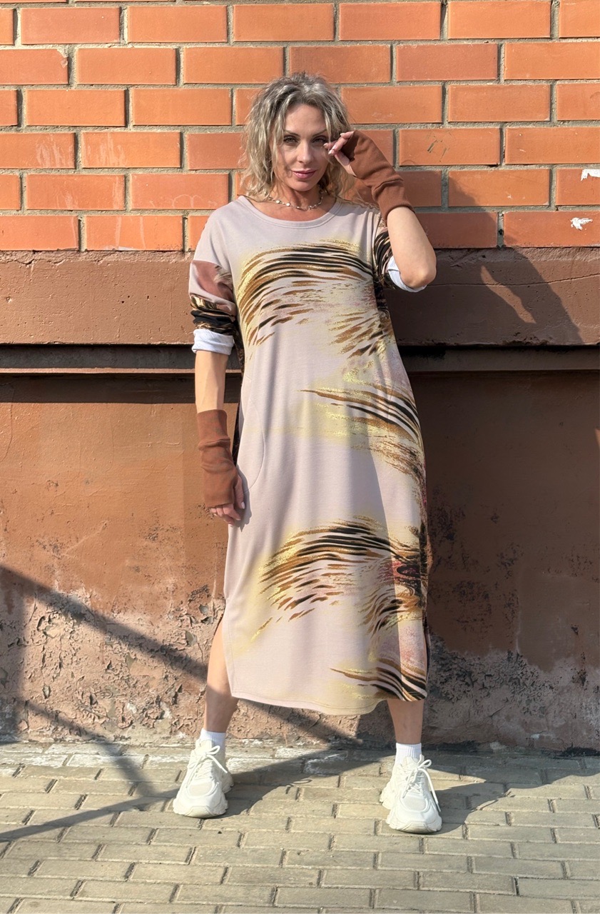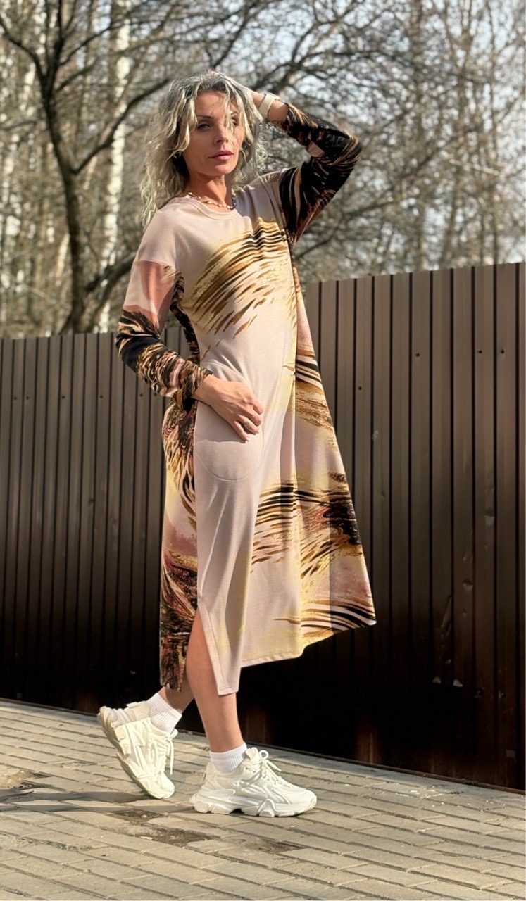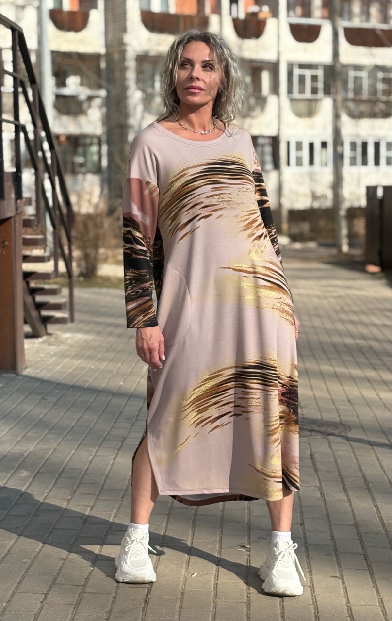 Платье / бочонок / трикотаж бежевый