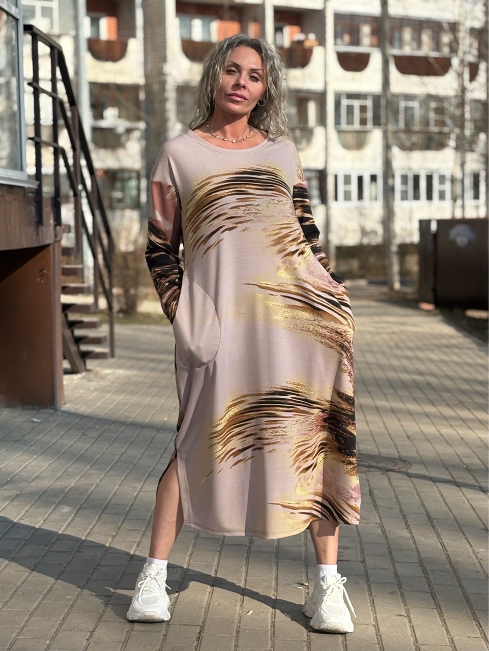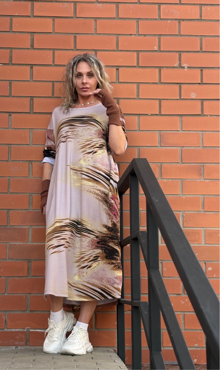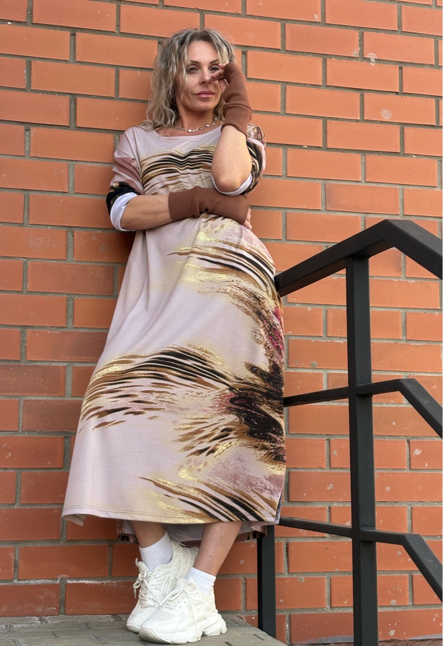 Платье / бочонок / трикотаж бежевый