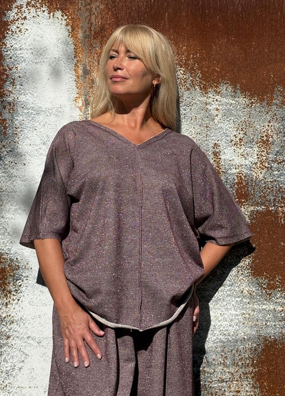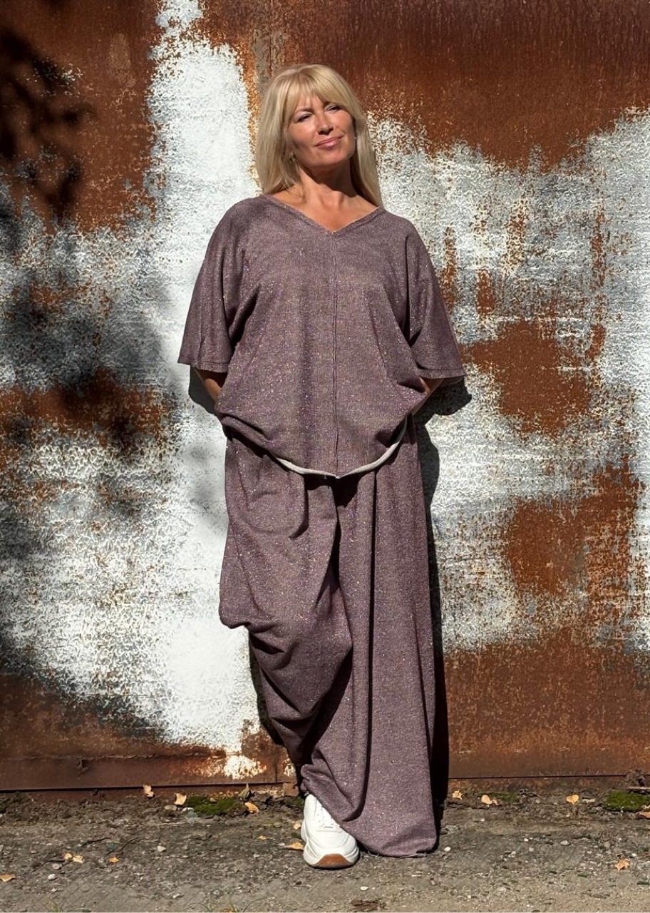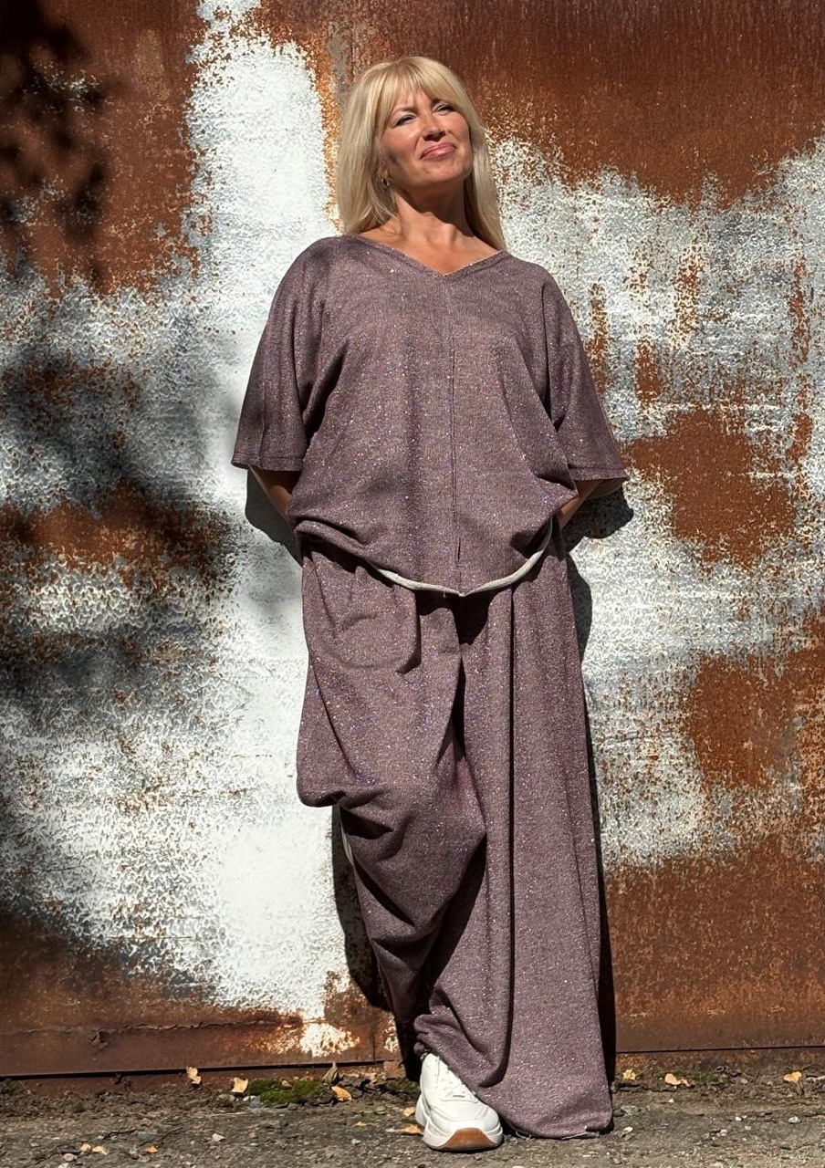 Топ + Юбки -брюки фиолетовые 💜 с рюлексом